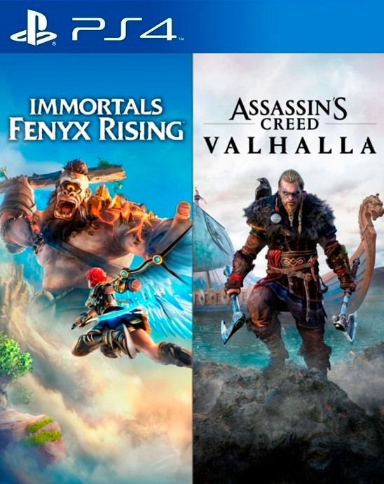 2 JUEGOS EN 1 Assassins Creed Valhalla MAS Immortals Fenyx Rising PS4